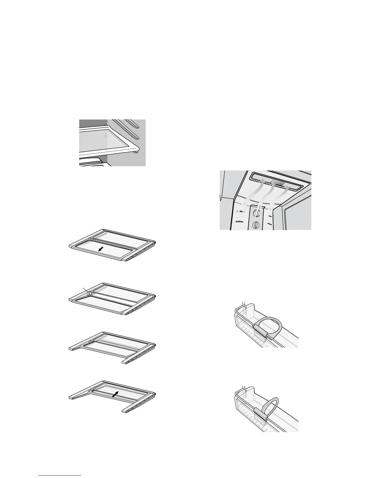 shelves. To remove the shelves, gently pull them forward