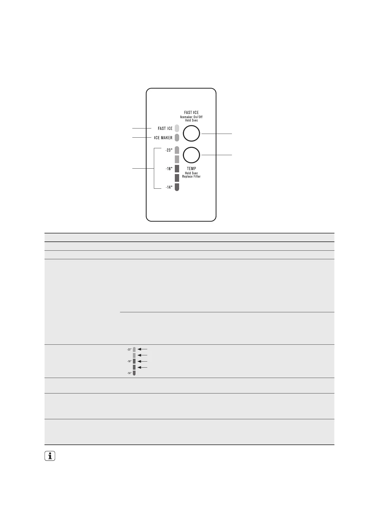 Fast Ice on/off LEDIndicates the status of the Fast Ice function.