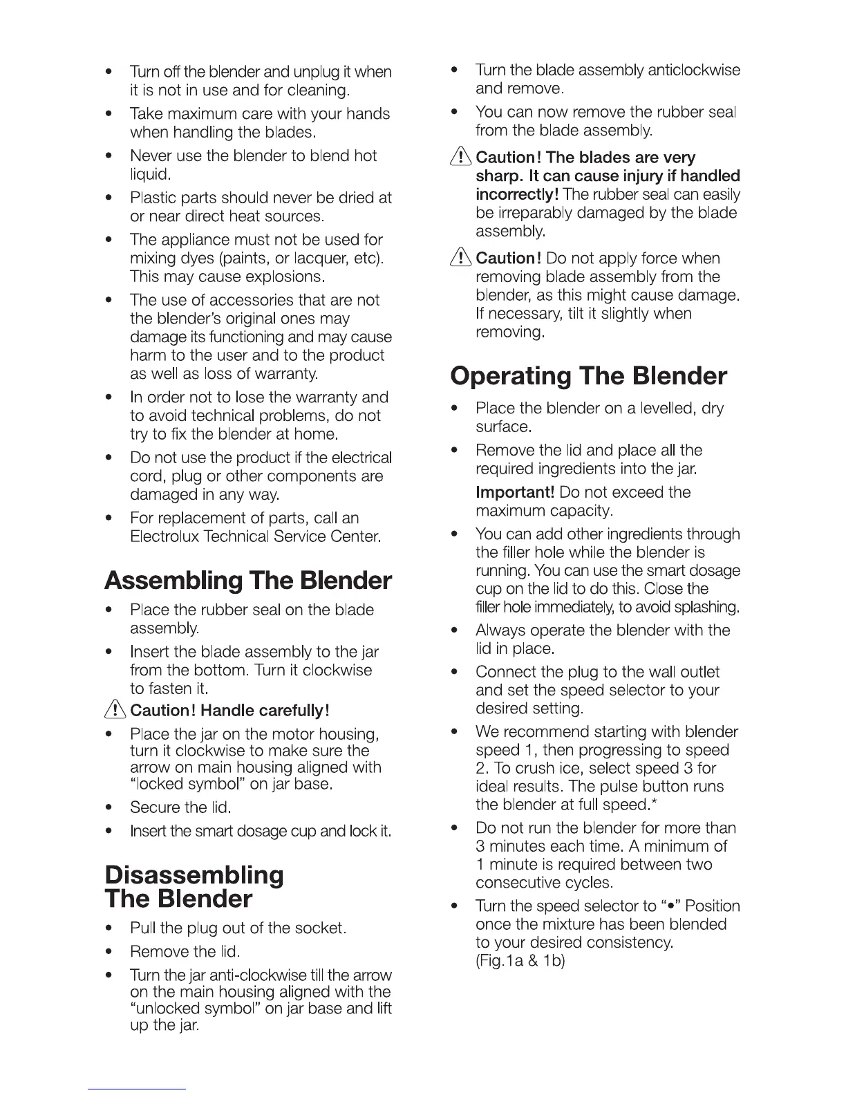 Electrolux EBR2001 - Assembling The Blender; Assembly Steps; Disassembling The Blender; Disassembly Steps