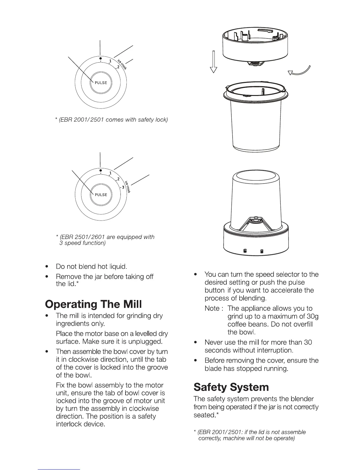 Electrolux EBR2001 - Operating The Mill; Mill Usage Instructions; Safety System; Safety System Description