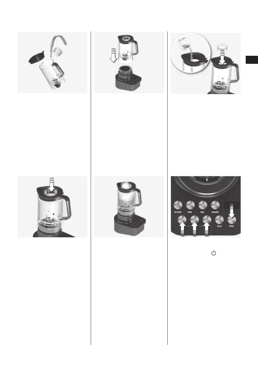 2. 블렌더 용기(A) 손잡이가 앞으로