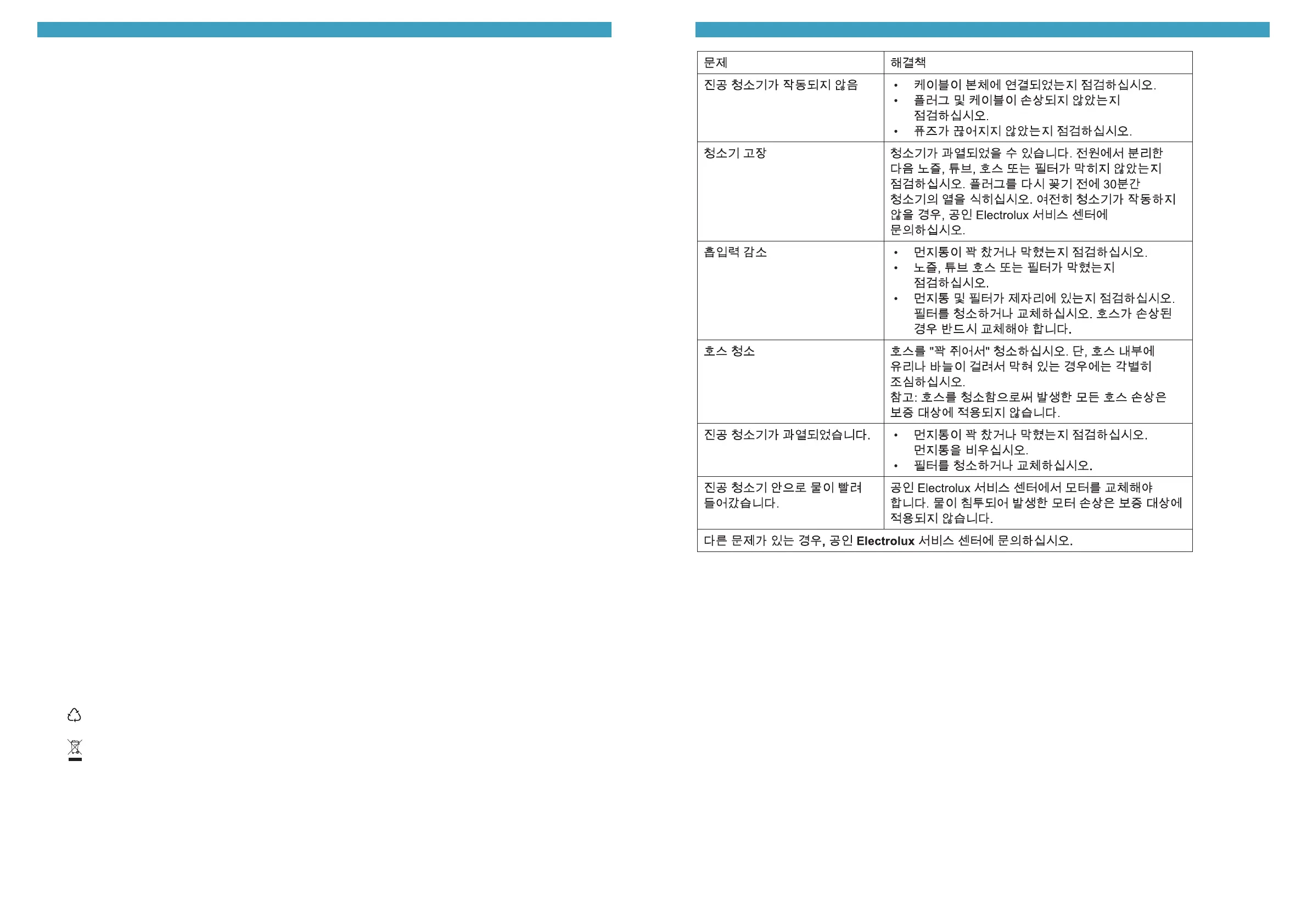 모든 서비스와 수리는 공인 Electrolux 서비스 센터에서 수행되어야 합니다.