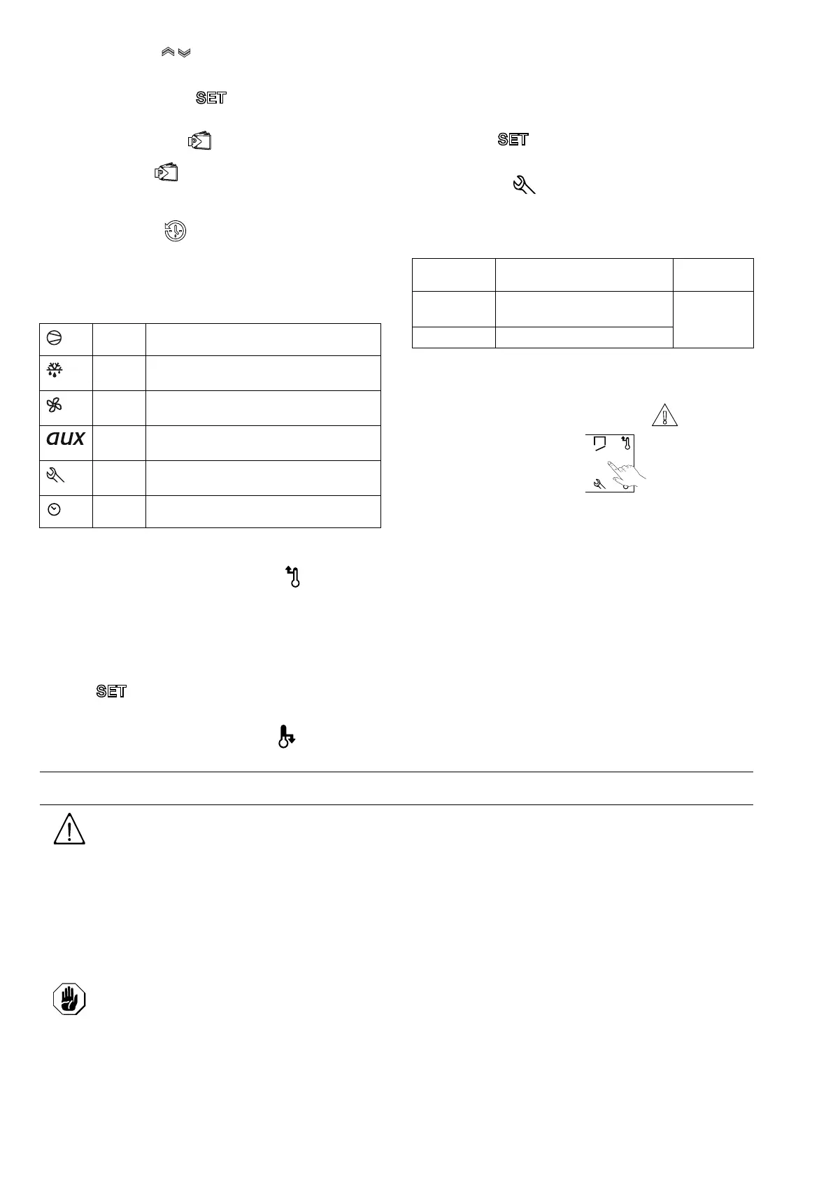 The digital thermostat has the following signalling ICONS: