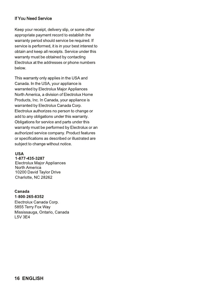 Electrolux ECVW3062AS - Contacting Service