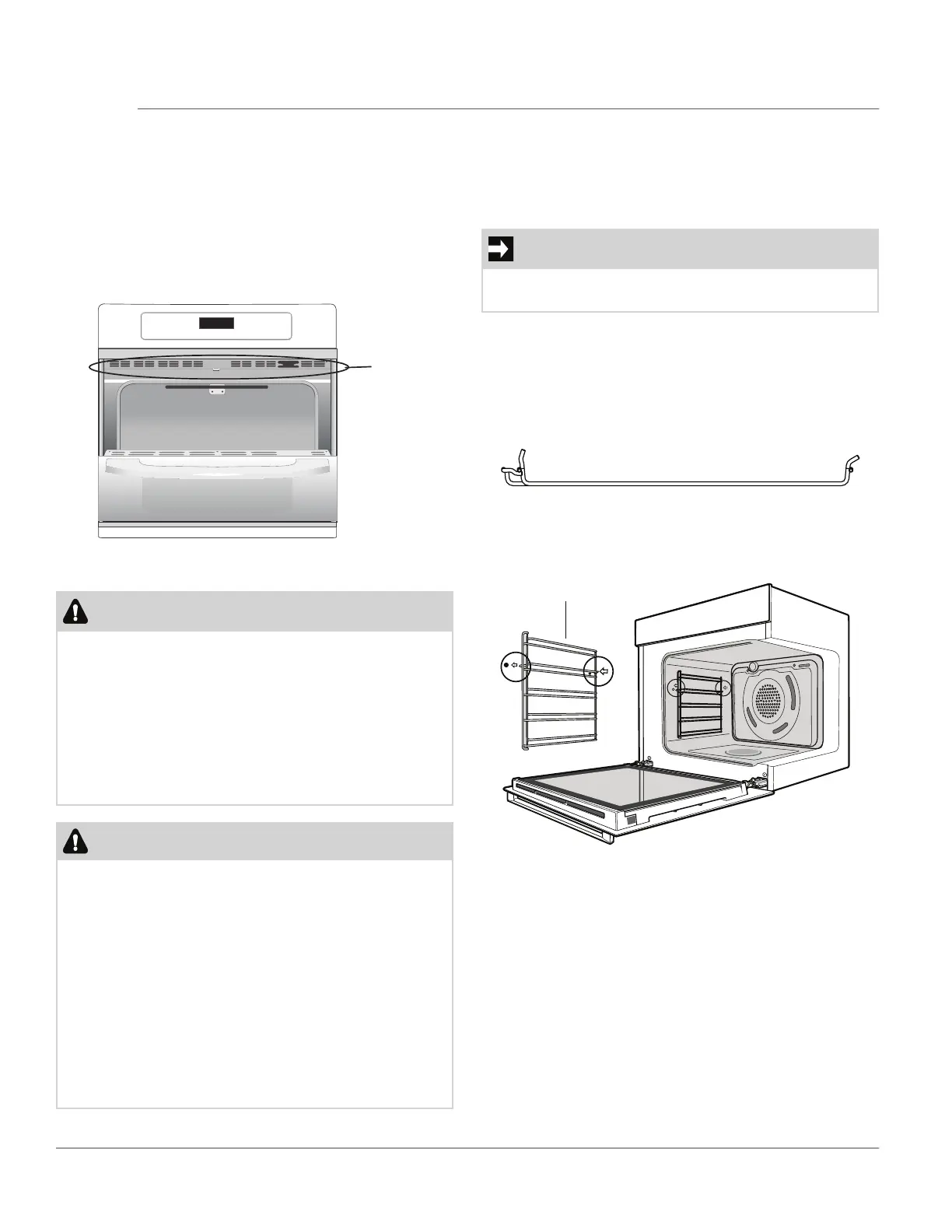 Always install the oven rack support before turning