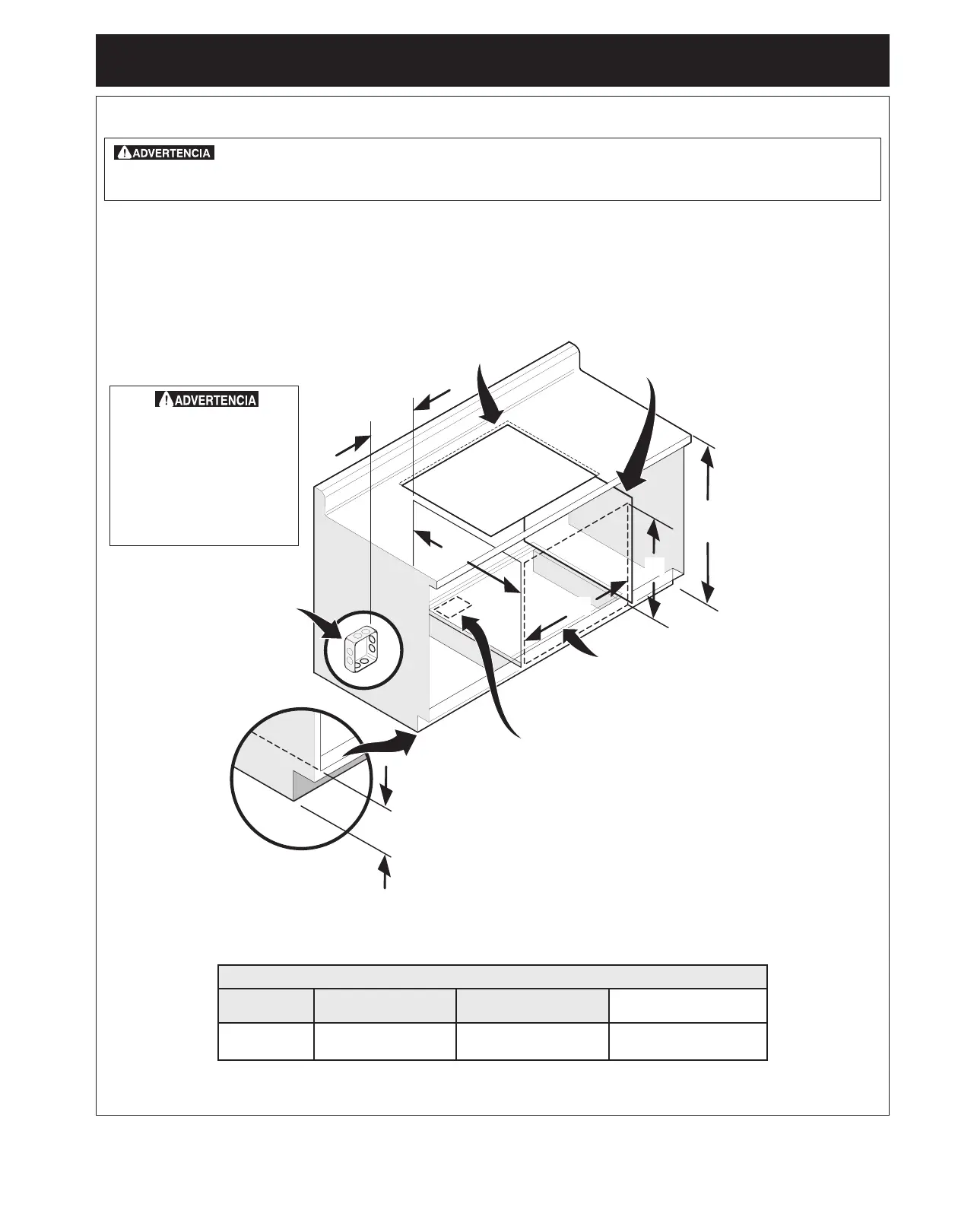 el horno en el espacio provisto. El horno debe estar centrado para prevenir una concentración excesiva de calor