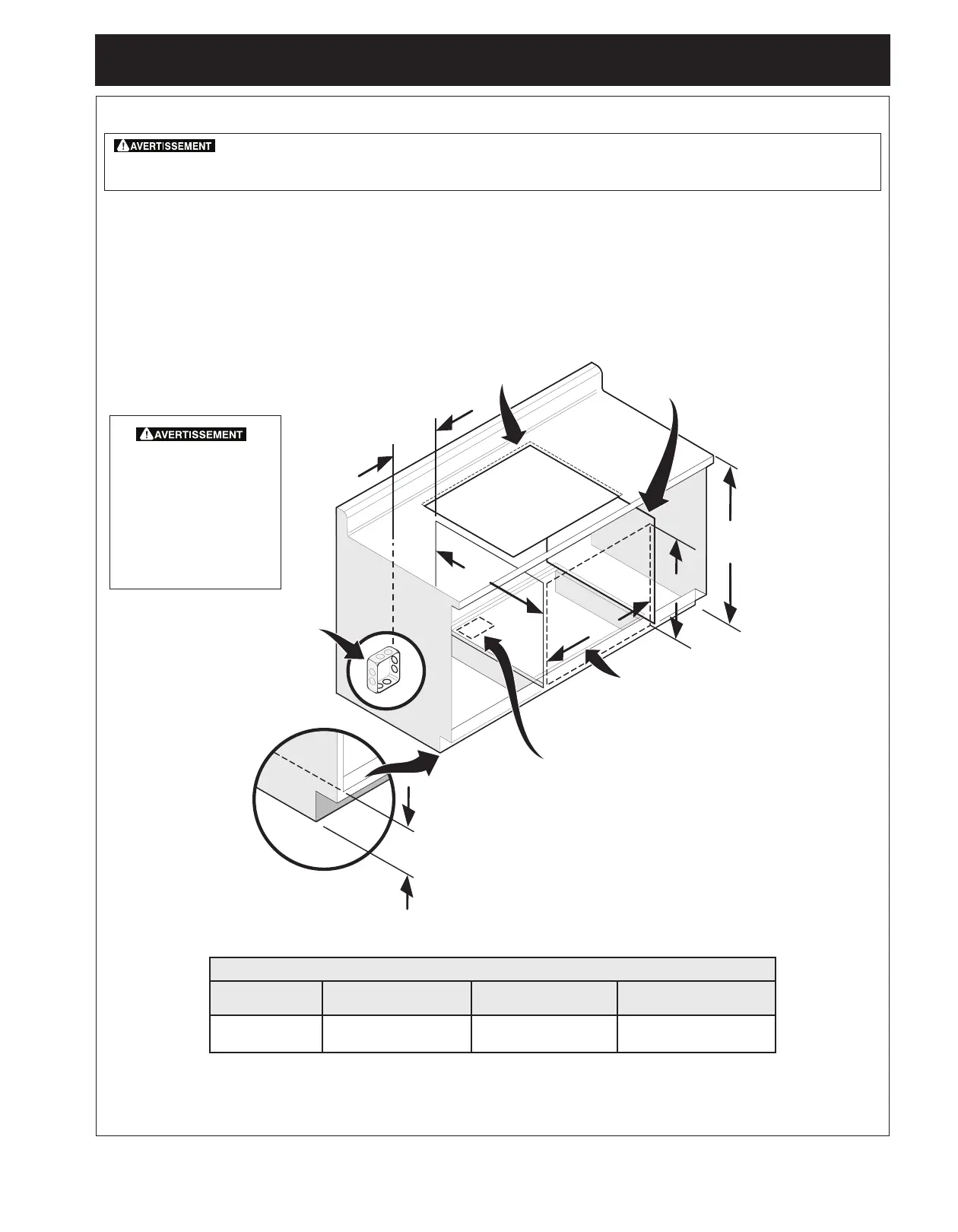 (avec les instructions pour l’installation la combinaison de table de cuisson)