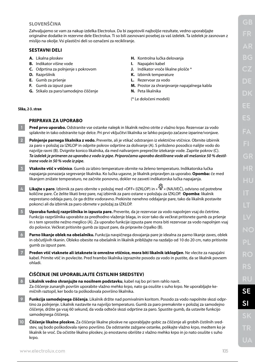 originalne dodatke in rezervne dele Electrolux. Ti so bili zasnovani posebej za vaš izdelek. Ta izdelek je zasnovan z