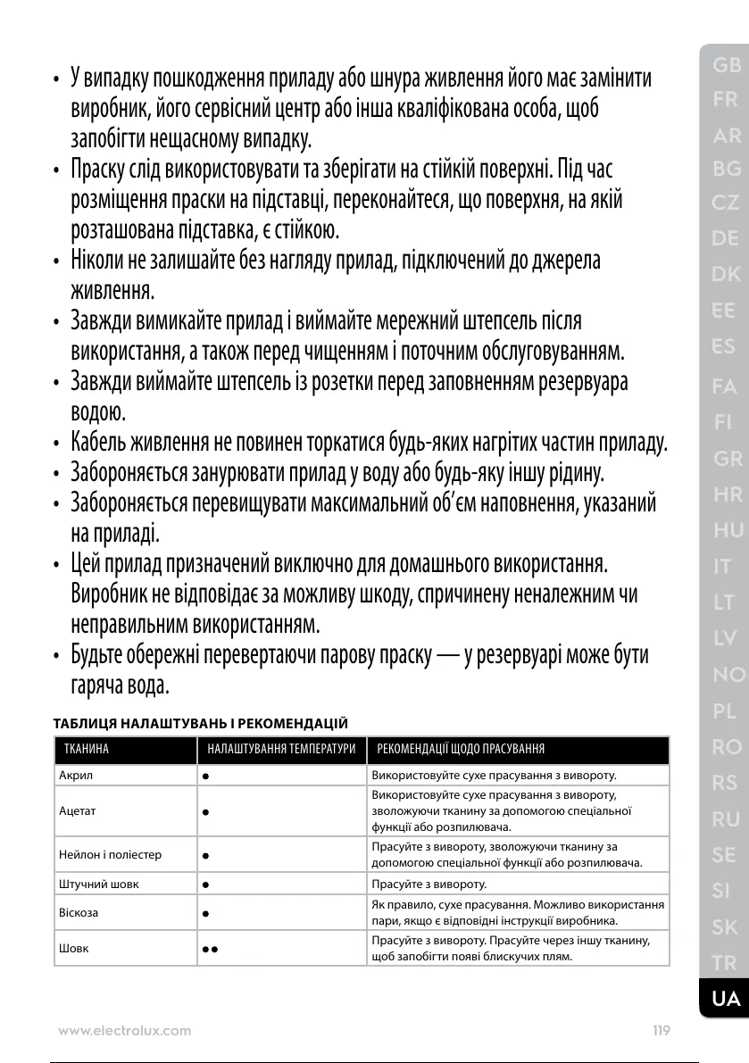 ТКАНИНА НАЛАШТУВАННЯ ТЕМПЕРАТУРИ РЕКОМЕНДАЦІЇ ЩОДО ПРАСУВАННЯ