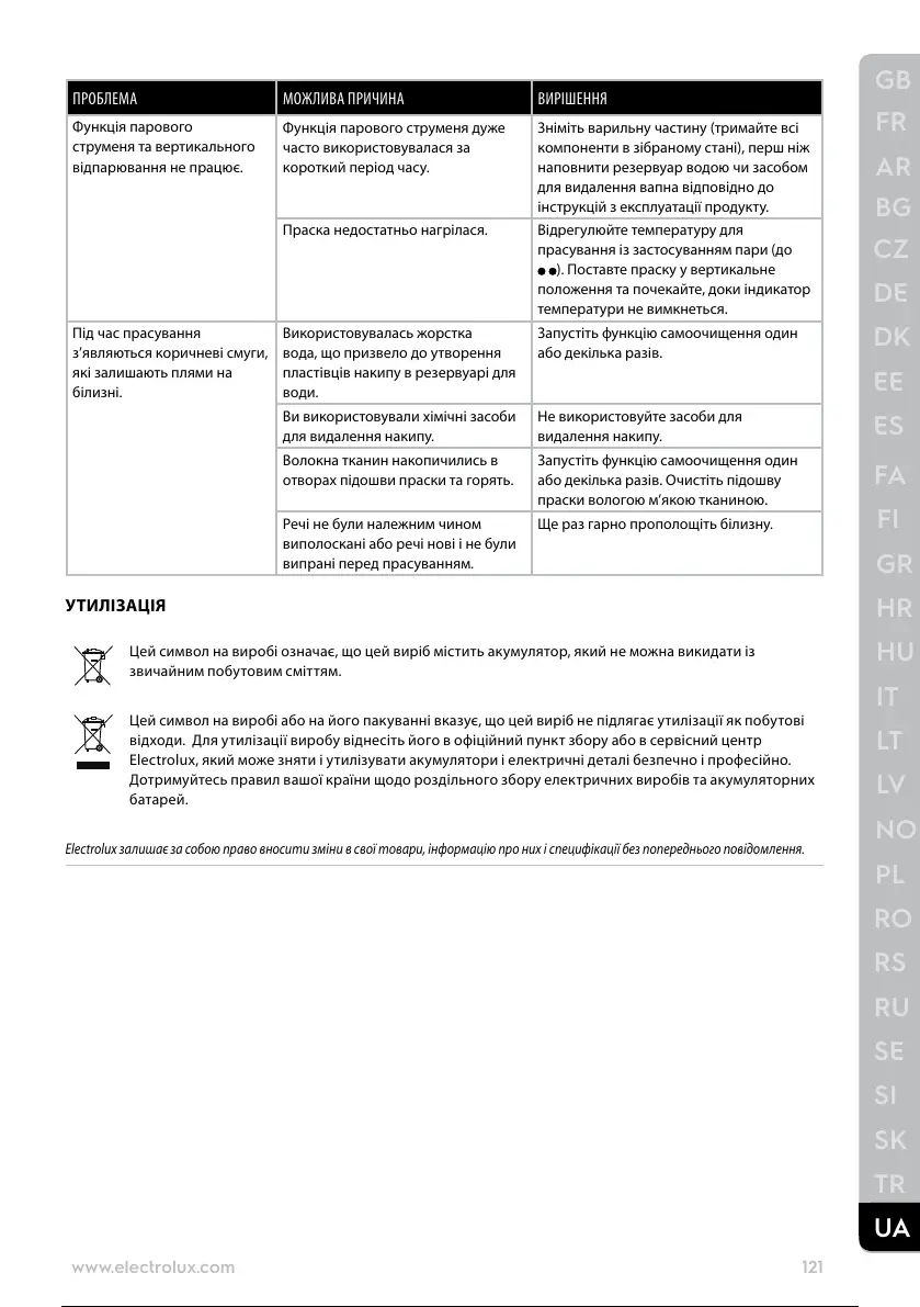 Electrolux залишає за собою право вносити зміни в свої товари, інформацію про них і специфікації без попереднього повідомлення.