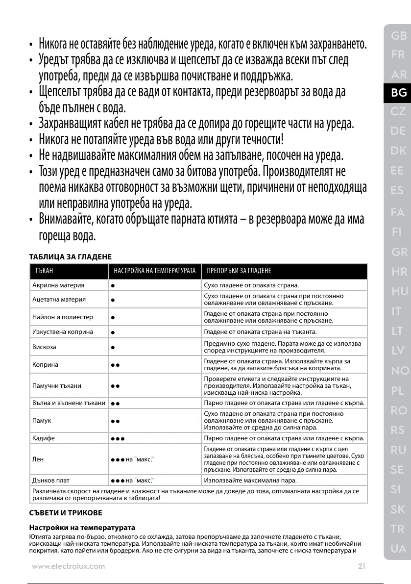 изискващи най-ниската температура. Използвайте най-ниската температура за тъкани, които имат необичайни