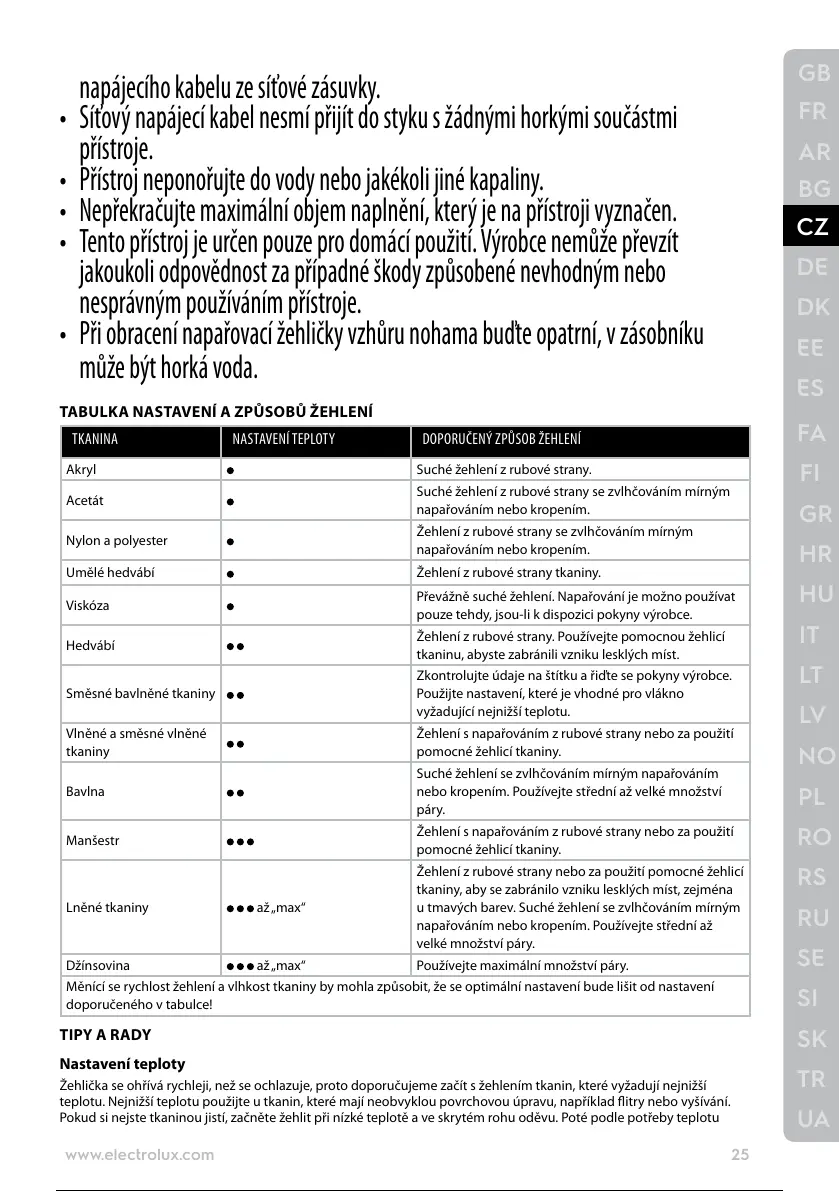 Žehlička se ohřívá rychleji, než se ochlazuje, proto doporučujeme začít s žehlením tkanin, které vyžadují nejnižší