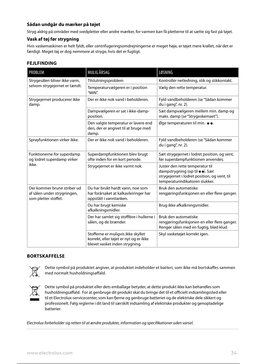 til et Electrolux-servicecenter, som kan erne og genbruge batteriet og de elektriske dele sikkert og
