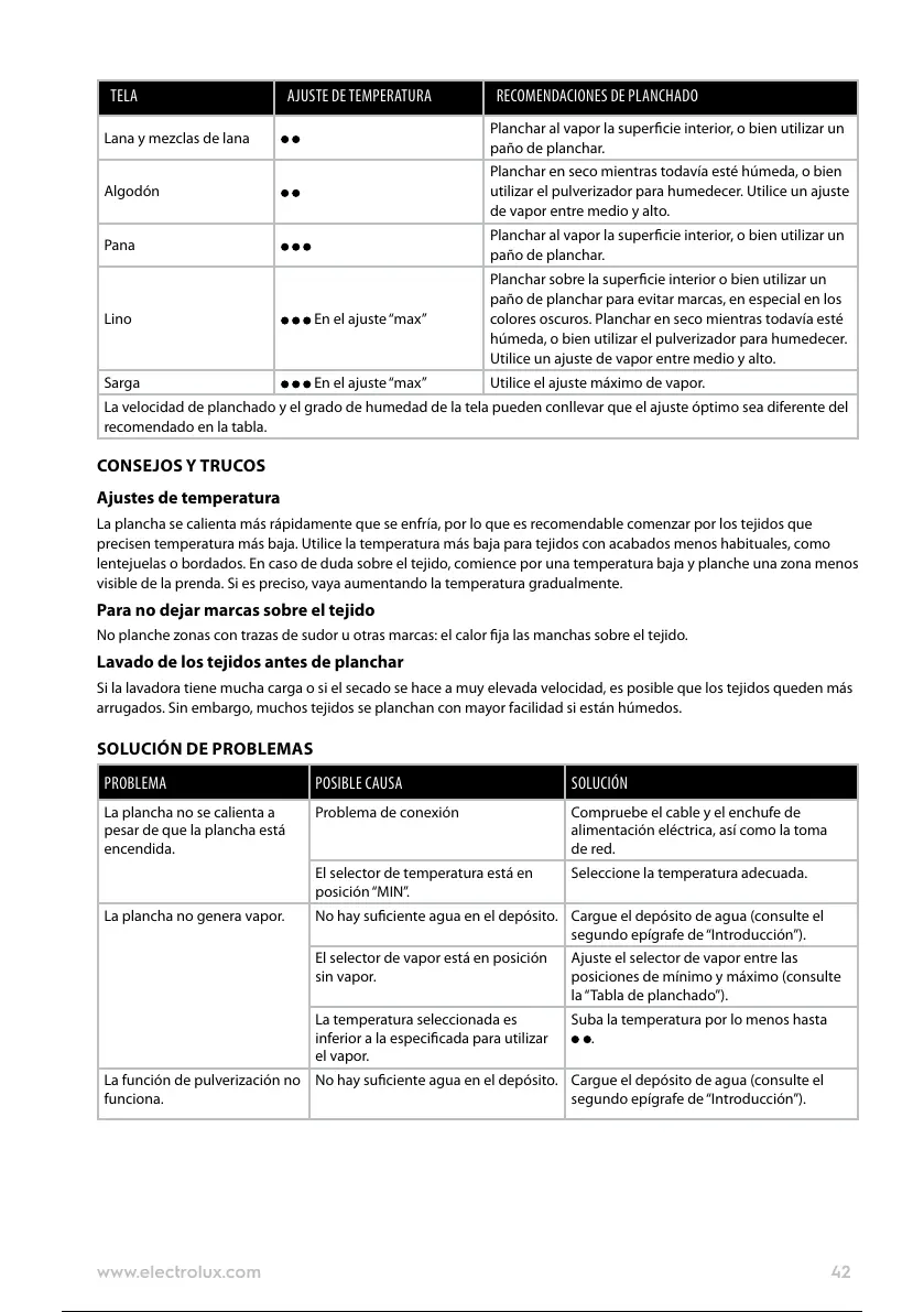visible de la prenda. Si es preciso, vaya aumentando la temperatura gradualmente.