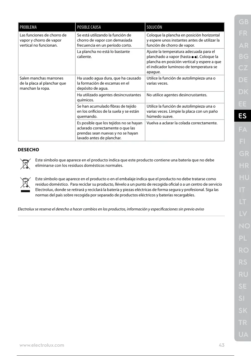 Electrolux se reserva el derecho a hacer cambios en los productos, información y especicaciones sin previo aviso