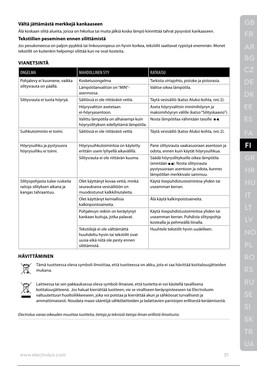 kotitalousjätteenä. Jos haluat kierrättää tuotteen, vie se viralliseen keräyspisteeseen tai Electroluxin