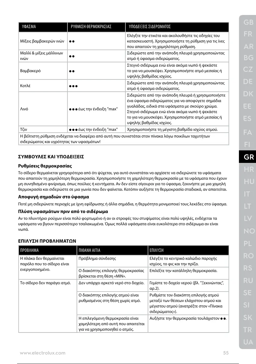θερμοκρασία και σιδερώστε σε μια γωνία που δεν φαίνεται. Κατόπιν αυξήστε τη θερμοκρασία σταδιακά, αν απαιτείται.