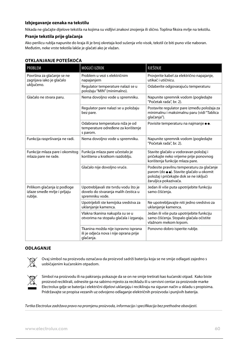 Electrolux gdje se baterija i električni dijelovi uklanjaju i recikliraju na siguran način u skladu s propisima.