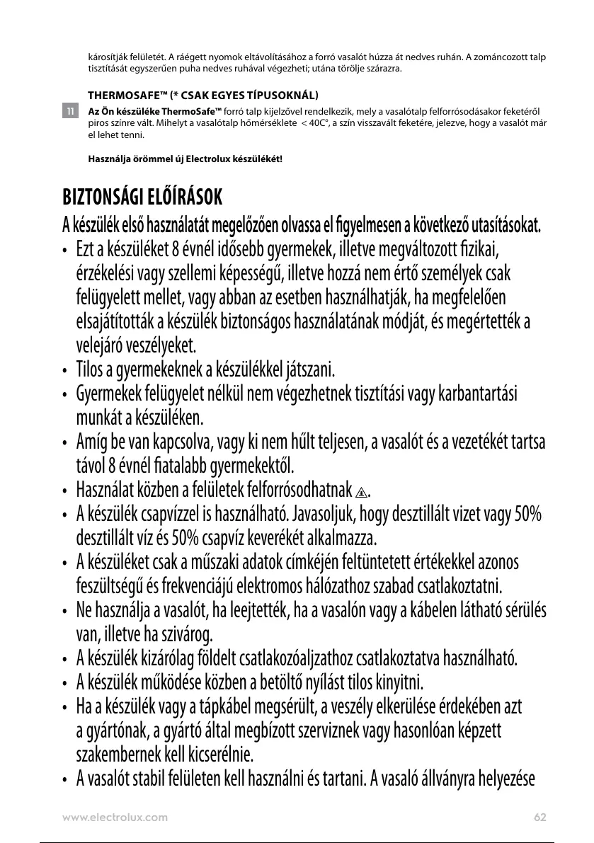 11 Az Önkészüléke ThermoSafe™ forró talp kijelzővel rendelkezik, melya vasalótalp felforrósodásakor feketéről