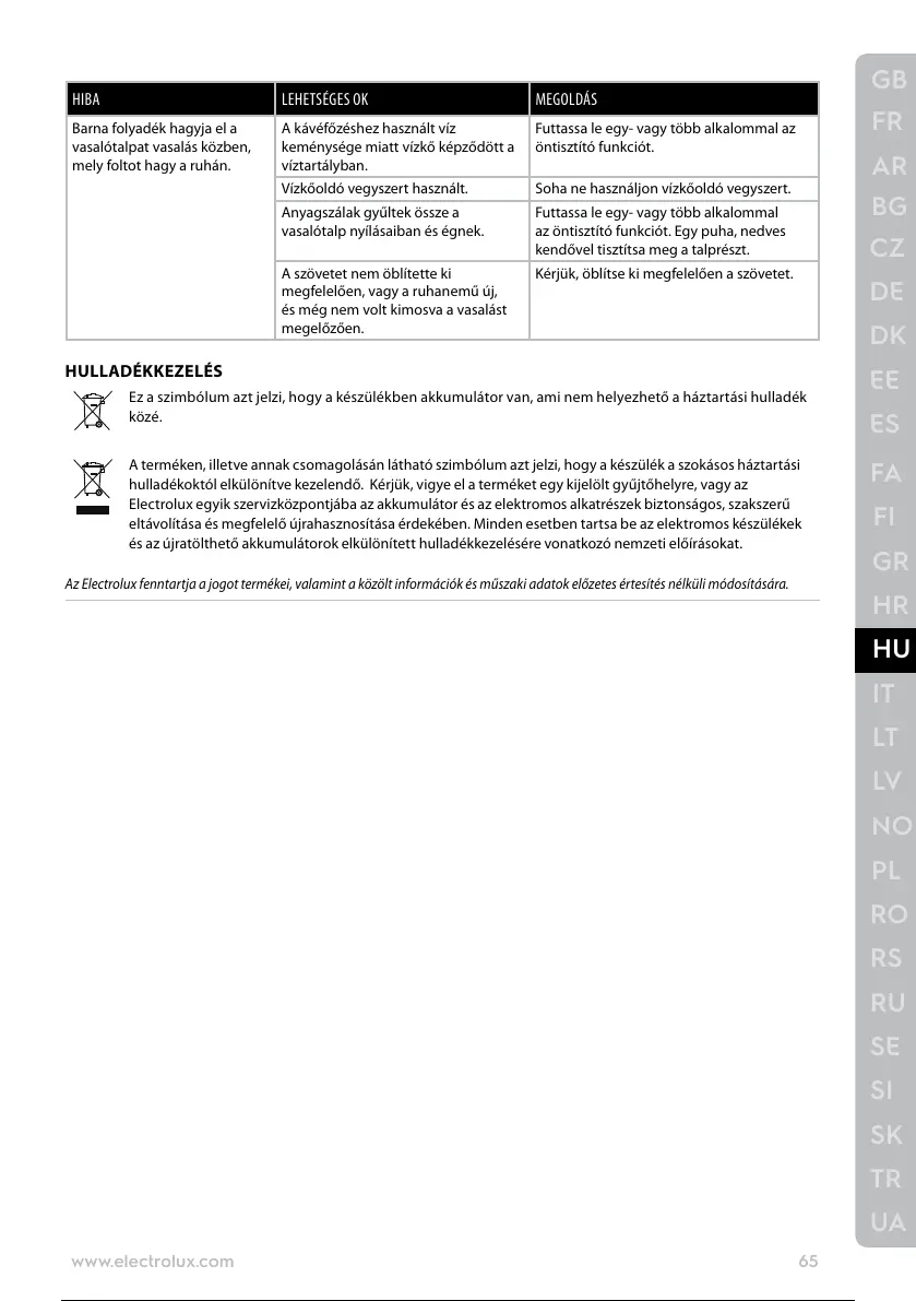 Az Electrolux fenntartja a jogot termékei, valamint a közölt információk és műszaki adatok előzetes értesítés nélküli módosítására.