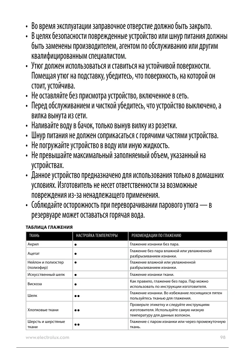 • Утюг должен использоваться и ставиться на устойчивой поверхности.