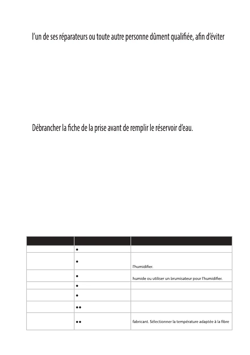 • Si l’appareil ou le cordon est endommagé, il doit être remplacé par le fabricant,