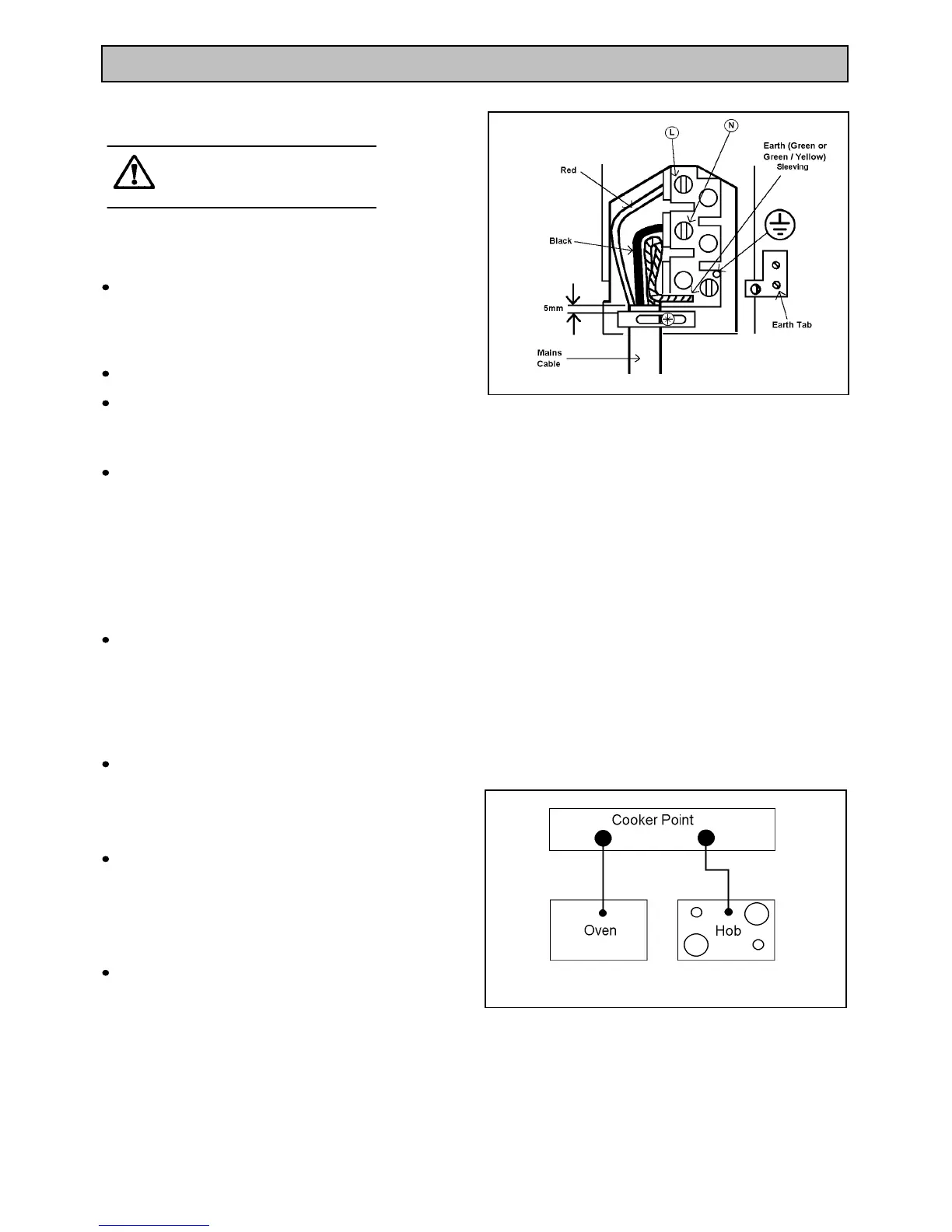 and hob separately to the cooker point. See Fig.