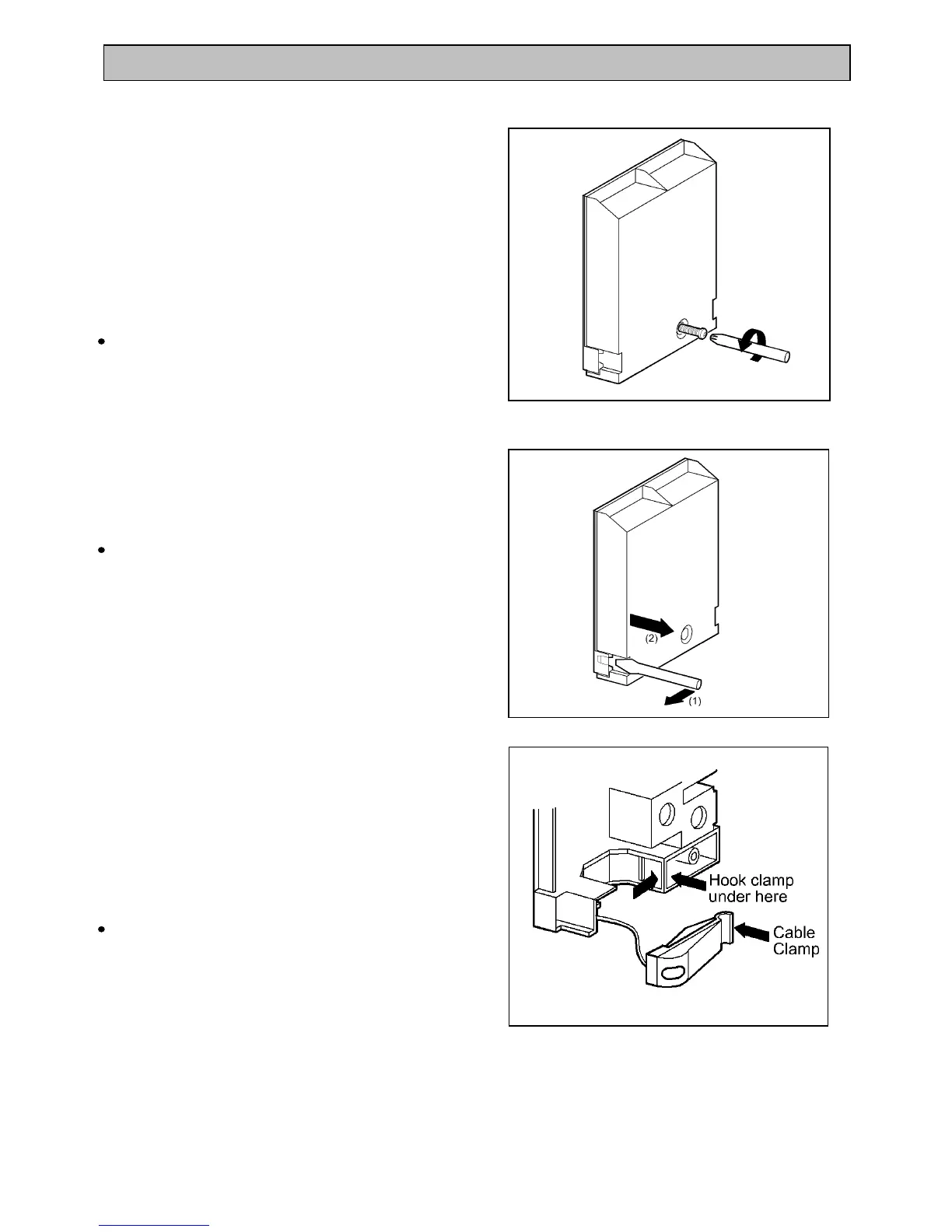 Lift cover and remove screw from cable clamp.