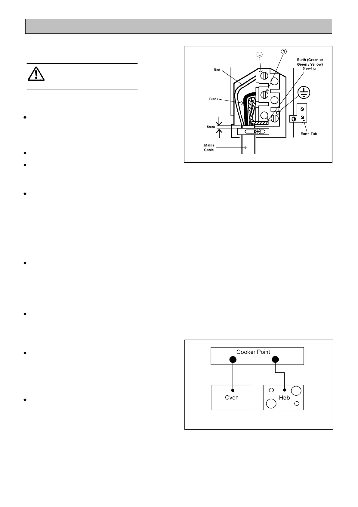 and hob separately to the cooker point. See Fig.