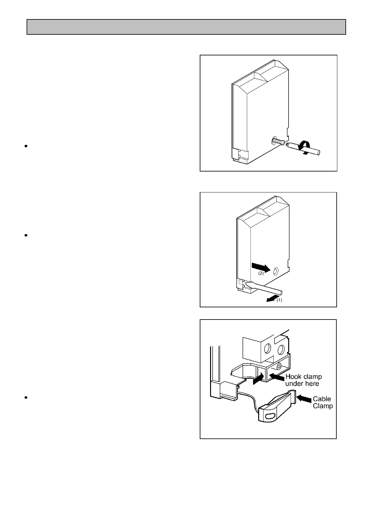 Lift cover and remove screw from cable clamp.