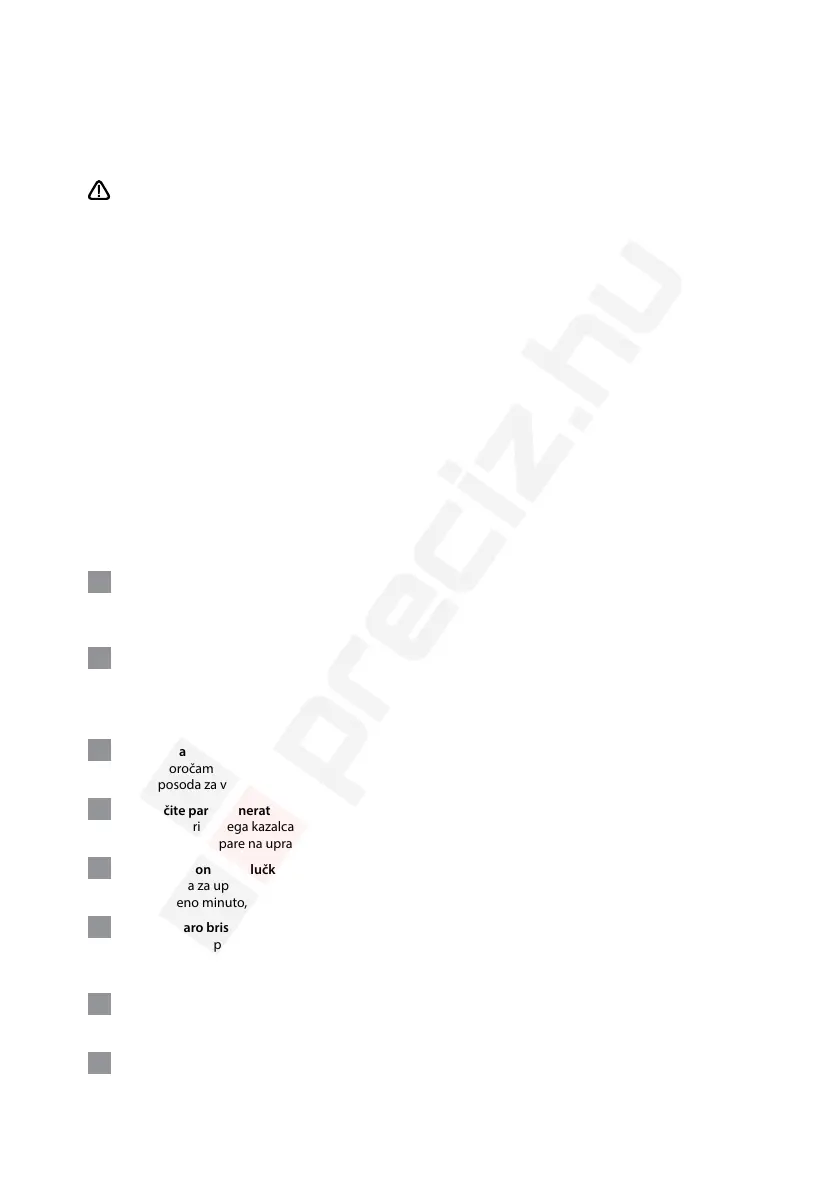 1 Pred prvo uporabo. Odstranite vse ostanke nalepk in likalnik nežno otrite z vlažno krpo. Namestite parni gen-