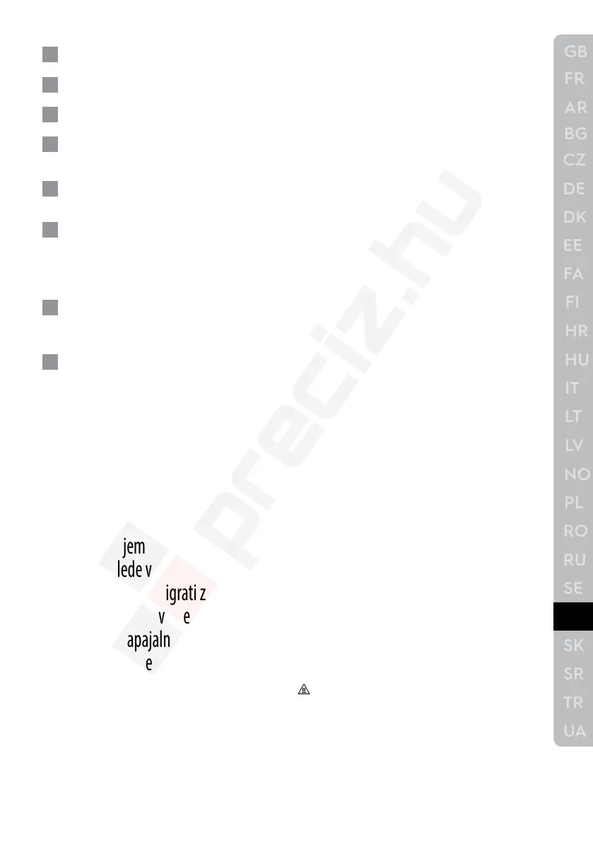 12 Vedno pospravite kabel varno ovit zraven likalnika. NIKOLI ne ovijajte napajalnega kabla okrog likalnika.