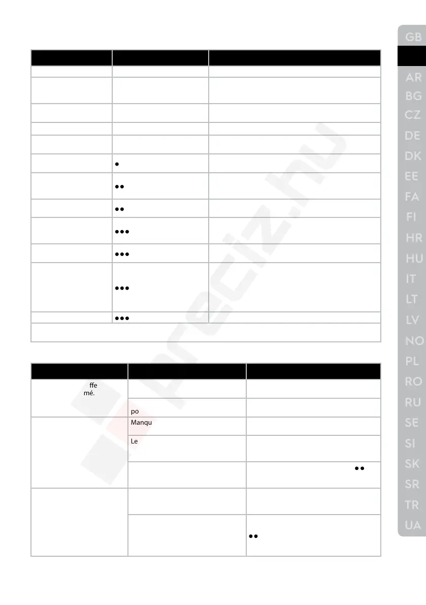 Manque d’eau dans le réservoir. Remplir le réservoir (voir «Première