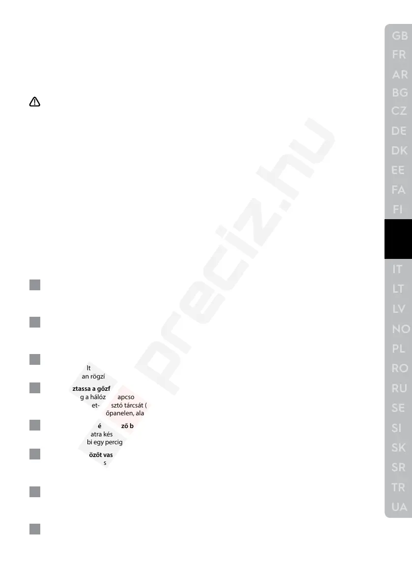 egység használatra kész. Tartsa nyomva a gőz gombot legalább 1 percig a gőz beindításához. Majd tartsa meg-