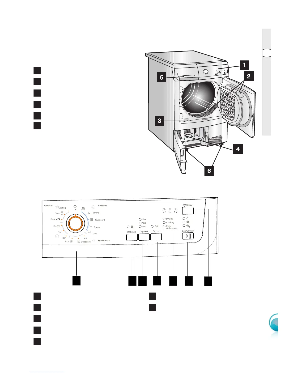 Electrolux EDC 66150W - Product Description and Control Panel; Control Panel Functions and Indicators