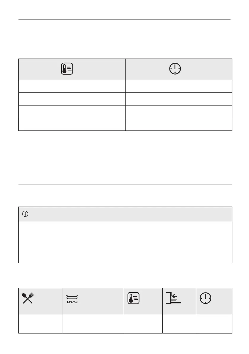 The temperature and cooking times in the tables are guidelines only. They depend on the recipes