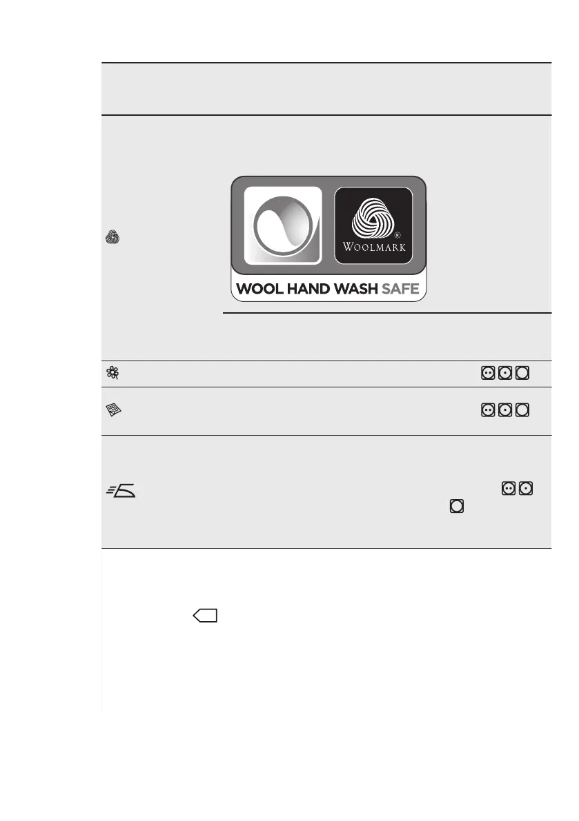 mark. De cyclus is geschikt voor wollen kleding die volgens het etiket op de hand moet wor-