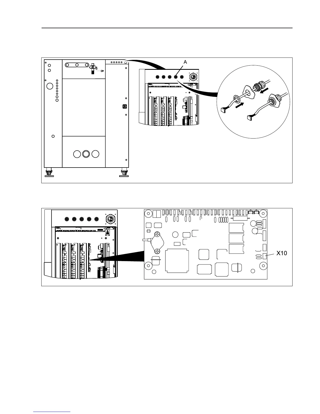 Connect the cable from the RJ11 port on the EDS controller to the X10 connection on the CPU card A1.