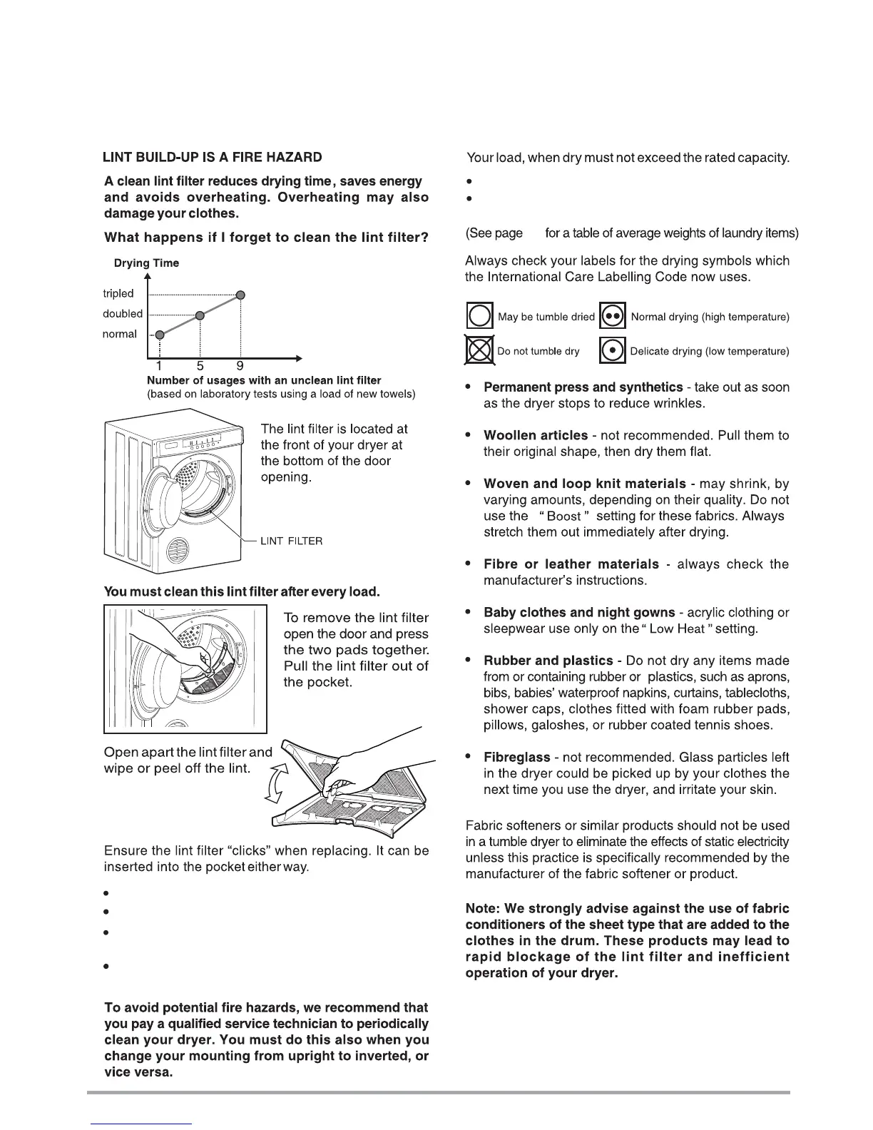 1.3 Cleaning The Lint Filter 1.4 Drying Guide