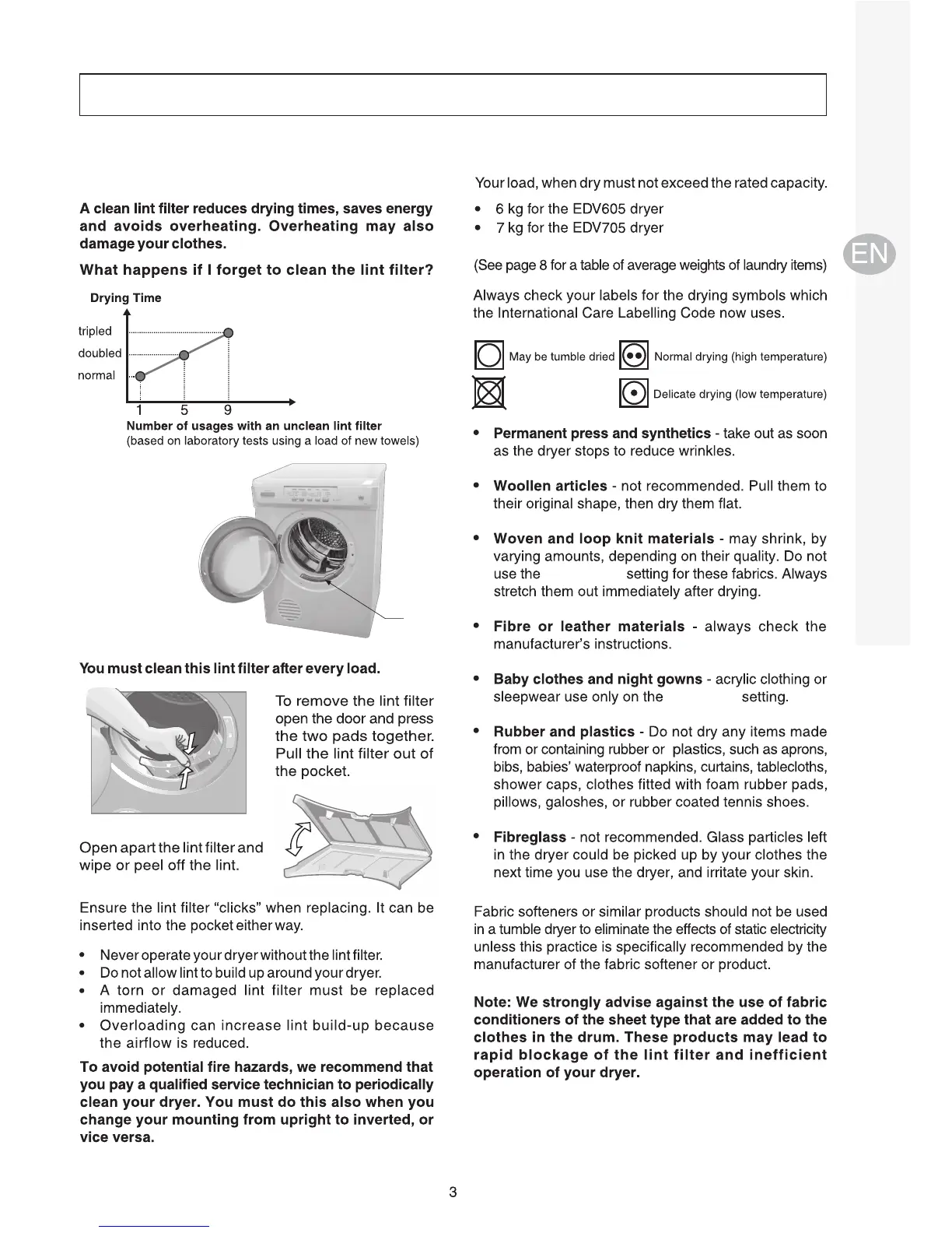 Electrolux EDV705 - Cleaning the Lint Filter; Drying Guide