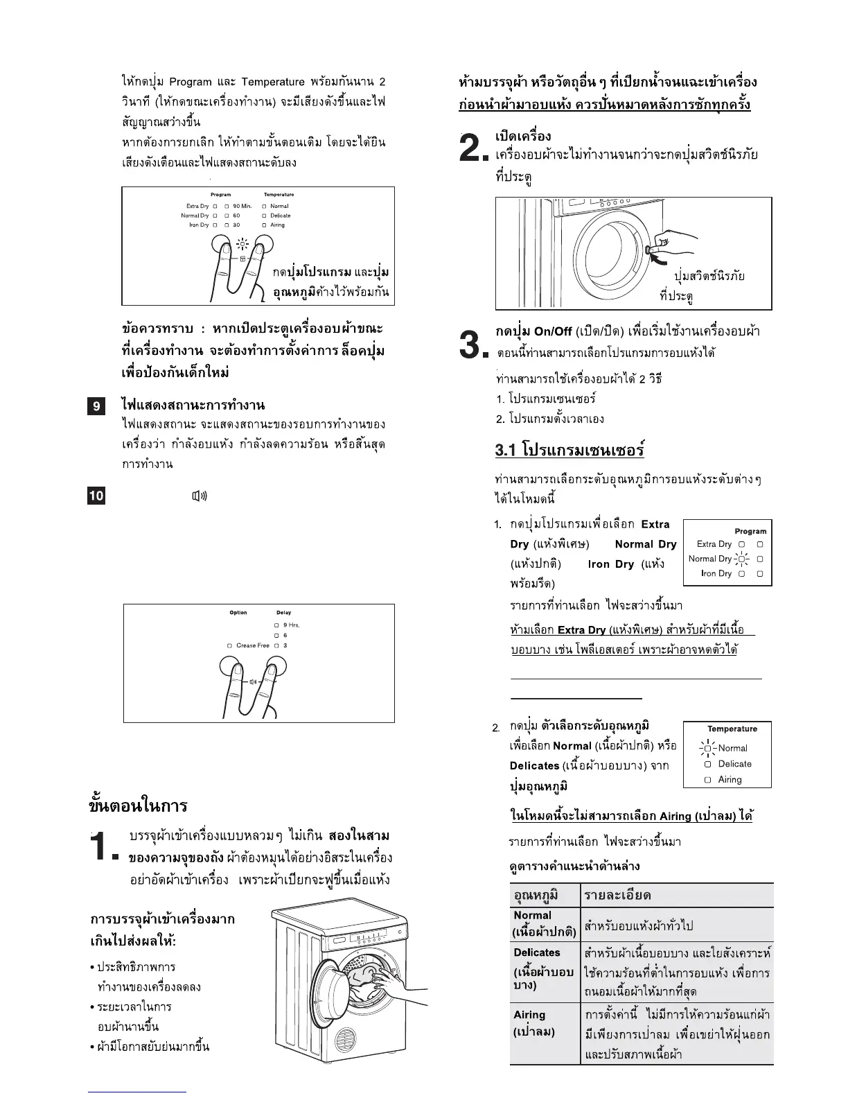 ในการอบผาปริมาณนอย ควรเลือกโปรแกรม Extra Dry