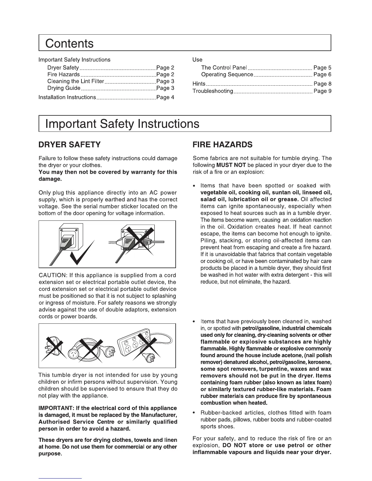 Electrolux EDV7051 - Important Safety Instructions; Dryer Safety; Fire Hazards