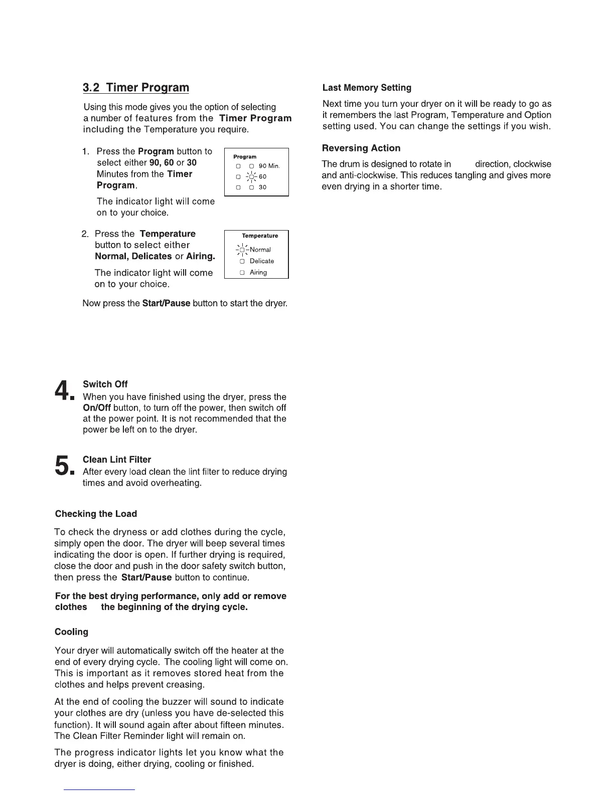 Electrolux EDV7051 - Sensor Program Operation; Timer Program Operation