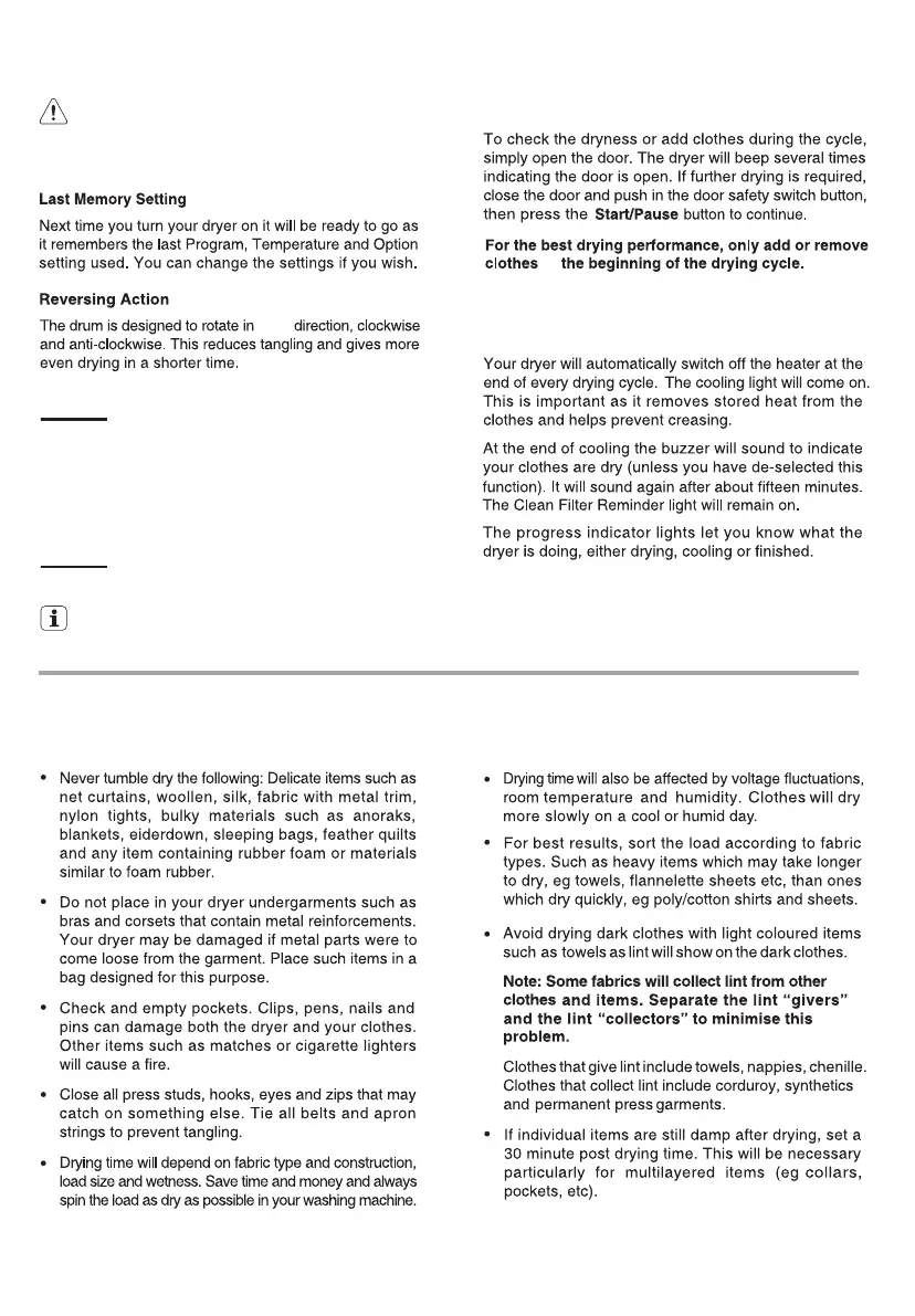 WARNING: Never stop a tumble dryer before