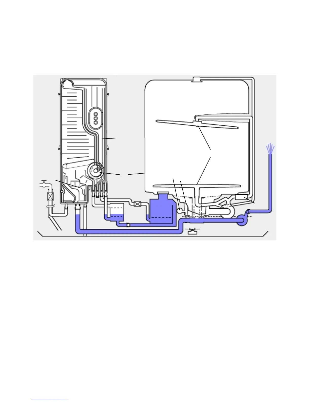 During the wash cycle the water is pumped out at various stages. First the draining water cleans the