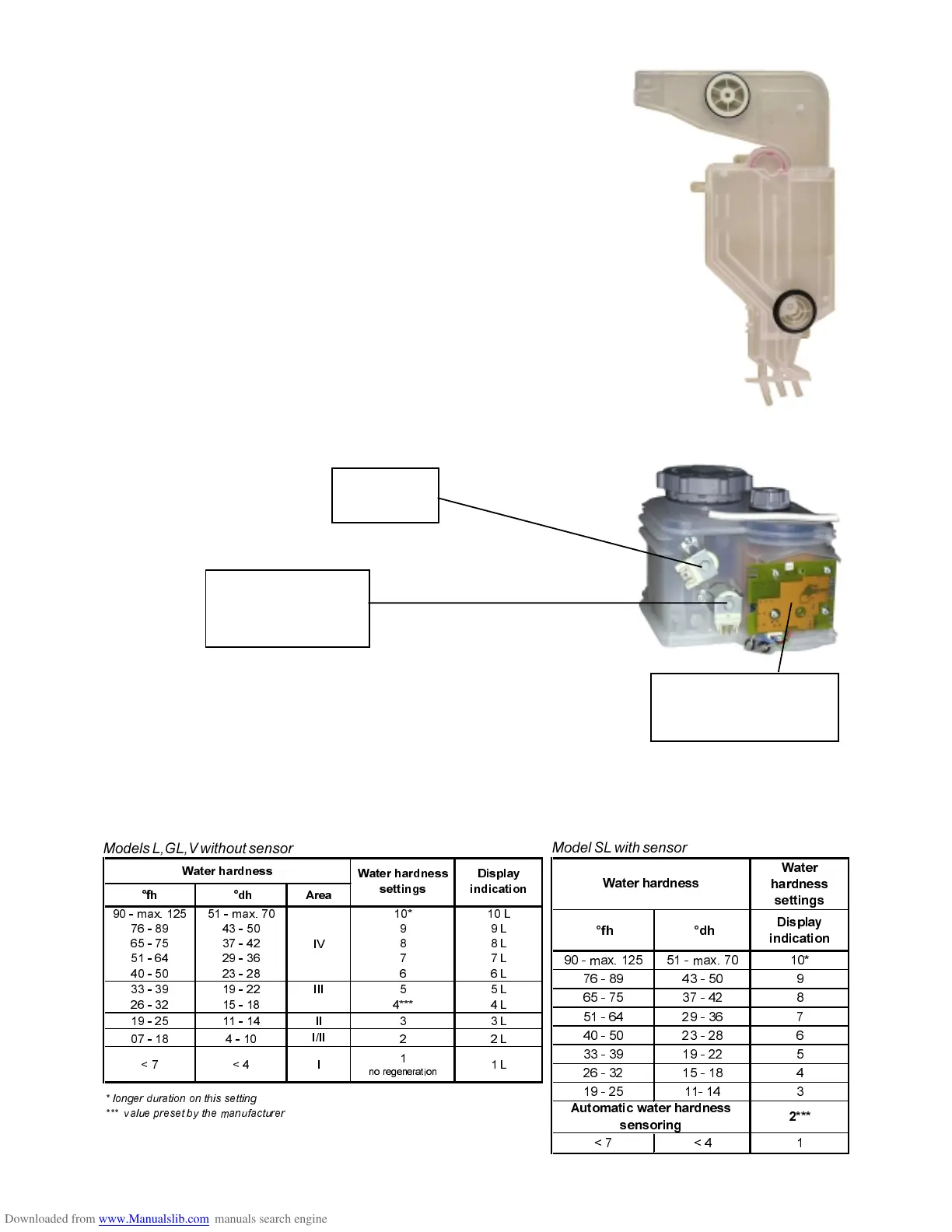 The water softening can be adjusted. The incoming water flows through the softener