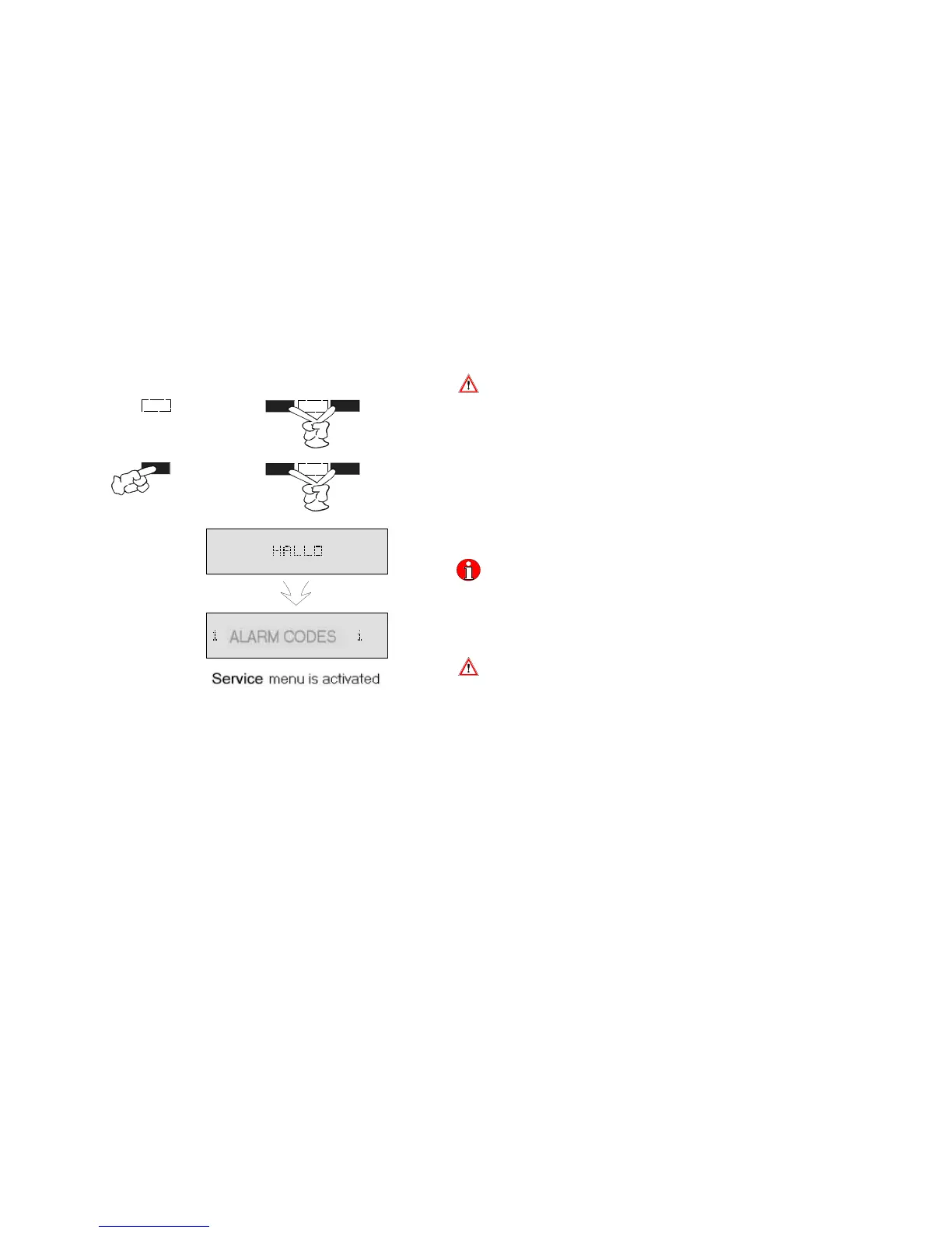 So that the service menu can be called up, the dishwasher must be switched off!