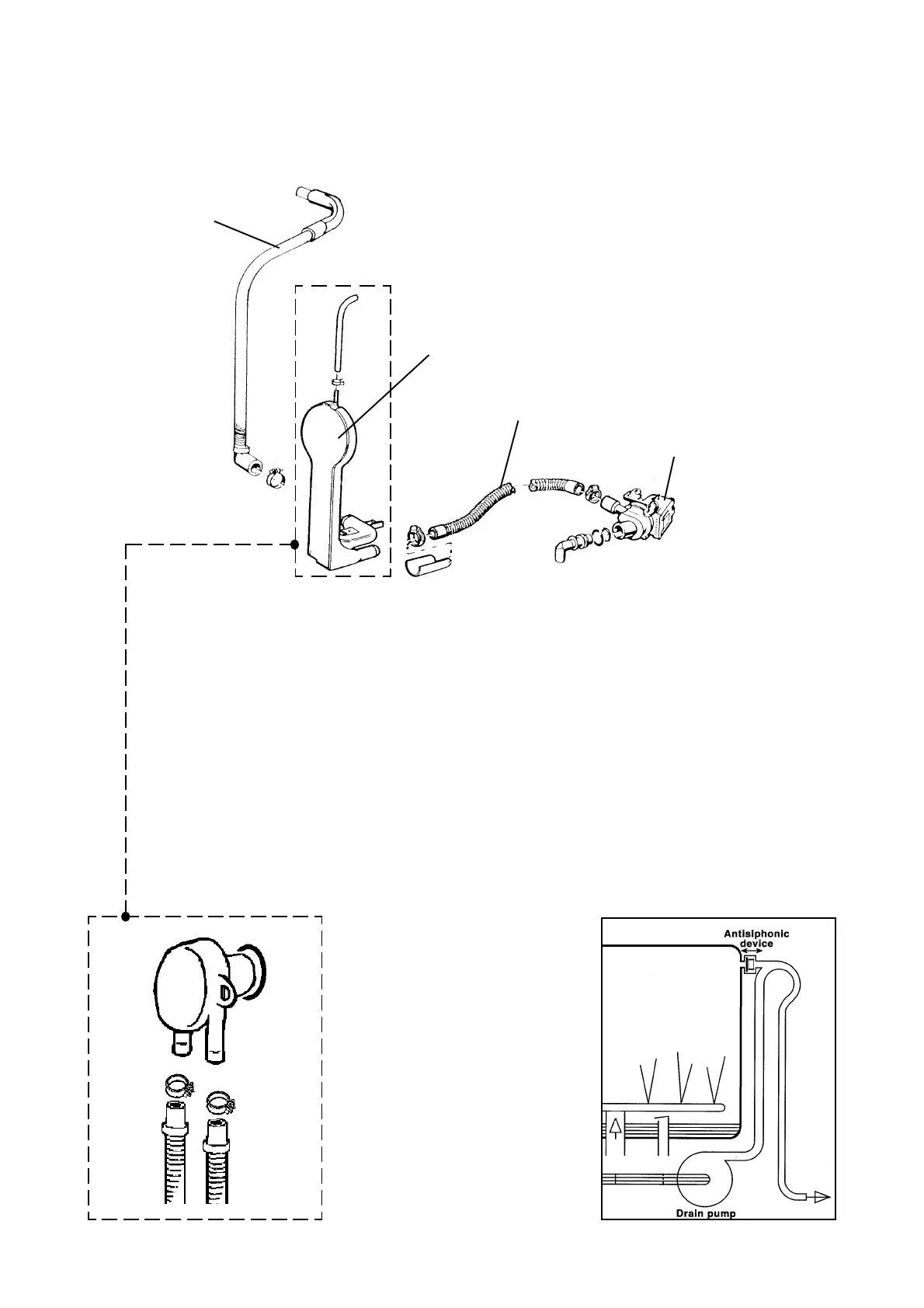 outer (visible) drain hose. A hole is provided at the highest point of the inner drain hose for
