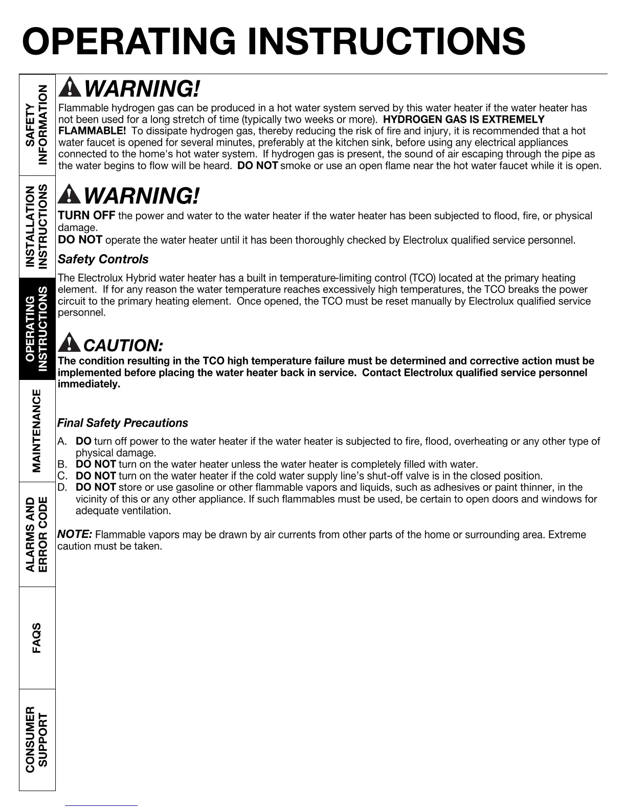Electrolux EE66WP30PS - Operating Instructions; Final Safety Precautions
