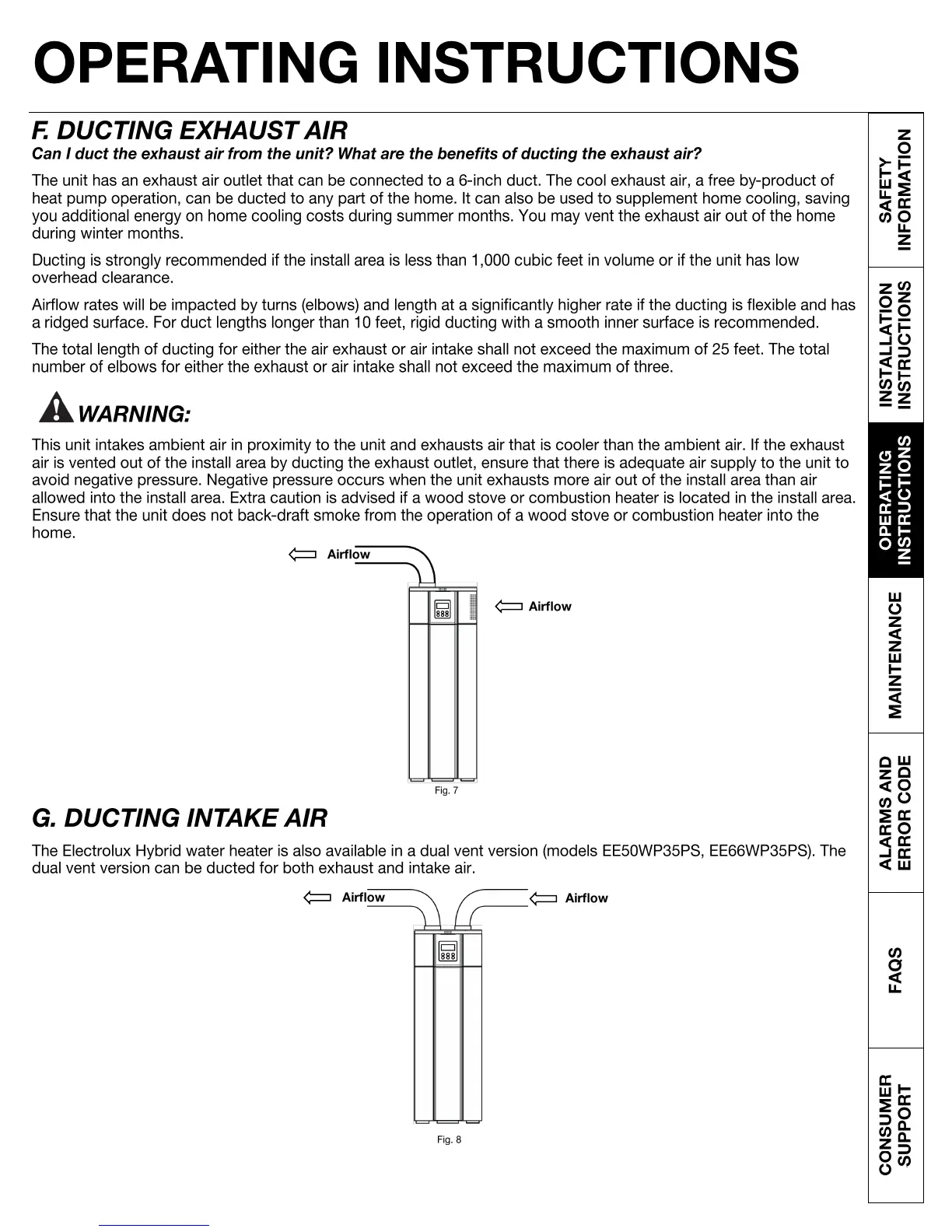 Electrolux EE66WP30PS - Ducting Exhaust Air; Ducting Intake Air